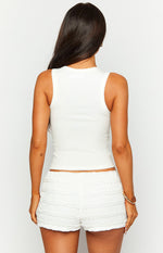 An everyday wear for an effortless yet stylish look with our white ribbed graphic tank top. Pair with white shorts on summer days or jeans for a casual look.